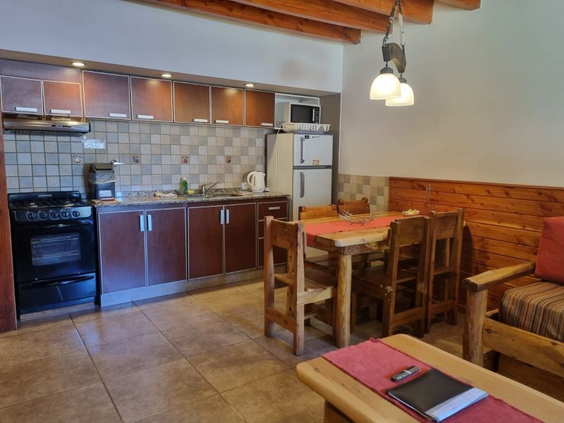 Cuenta con 1 dormitorio + un altillo por escalera con 2 camas somier, 1 baño completo, cocina totalmente equipada (microondas, cafetera, tostadora, horno, vajilla completa), estar con hogar a leña,+ sofá cama, calefacción central, TV LCD por cable, parrilla. Servicio de mucama y ropa blanca. Su tarifa NO incluye desayuno.